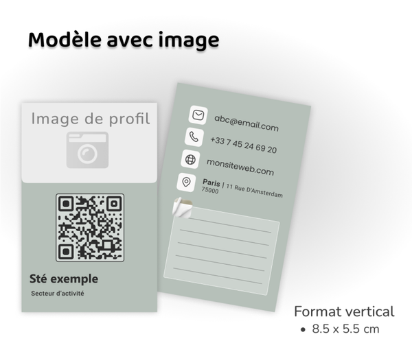 - Carte de visite physique avec un QR code pour votre carte numérique.